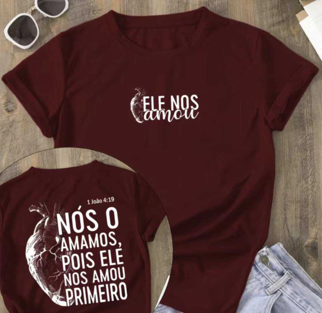 Descubra a Camiseta Cristã "Ele nos amou primeiro", feita 100% em algodão para oferecer conforto e qualidade incomparáveis. Com uma mensagem profunda de amor divino, esta camiseta é perfeita para expressar sua fé com estilo e autenticidade no dia a dia. Leve, macia e cheia de significado, ela transforma seu visual com uma mensagem que toca o coração. Vista sua fé com elegância e conforto!